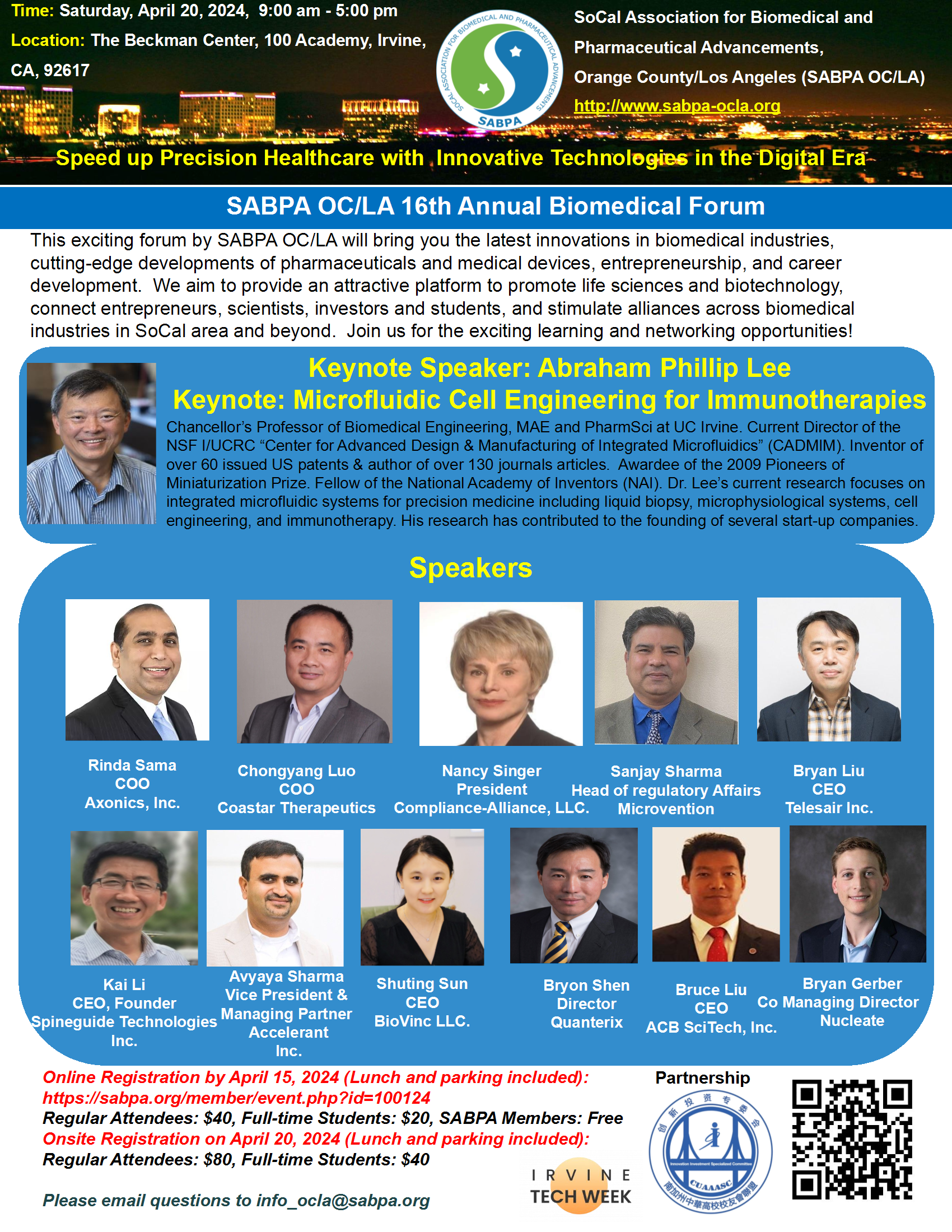 SoCal Association for Biomedical and Pharmaceutical Advancements Orange County and Los Angeles (SABPA OC/LA) is excited to bring you the 16th SABPA OC/LA Annual Biomedical Forum, a must-attend local biotech and medical device event!