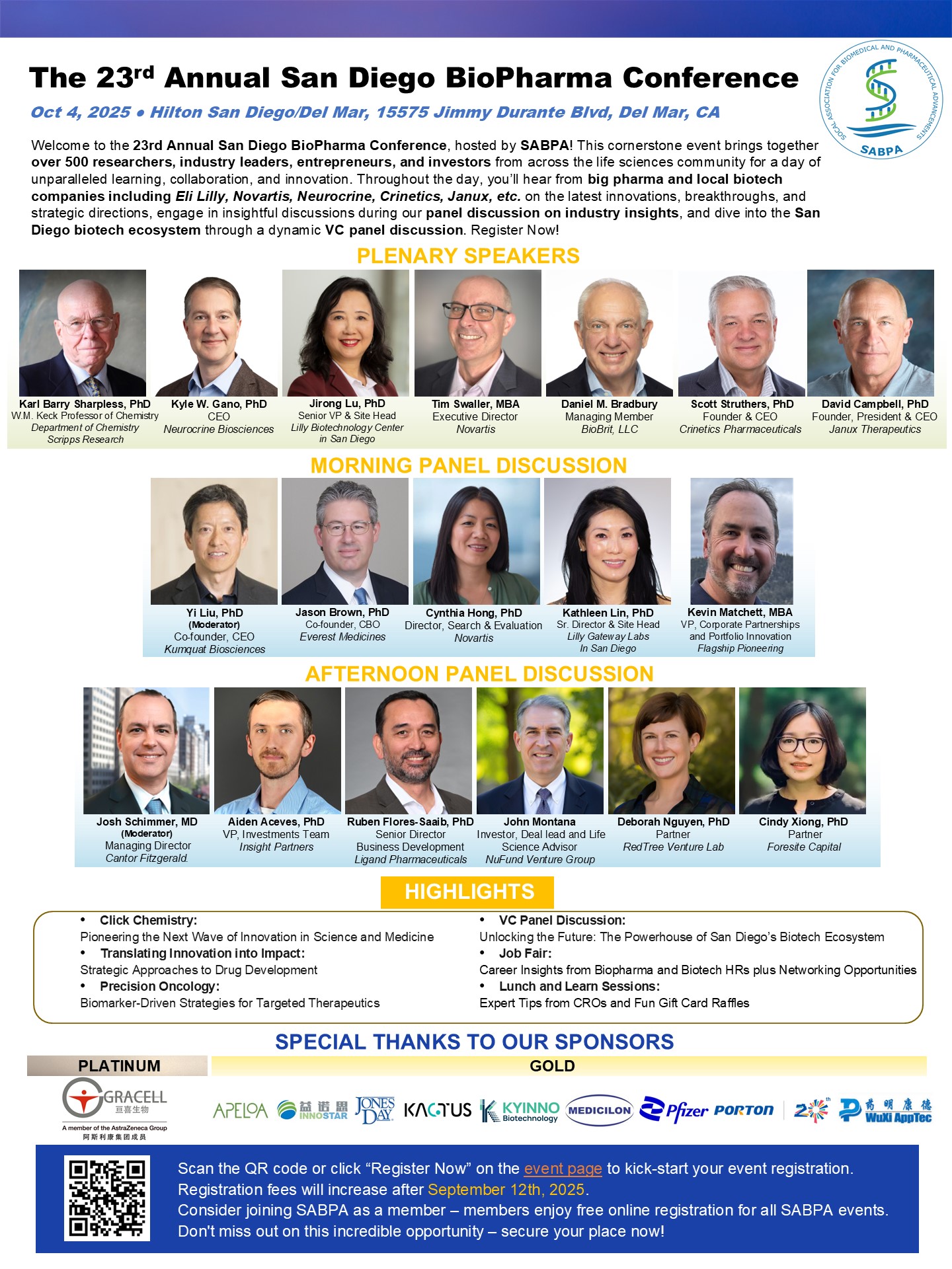 Welcome to the 23rd Annual San Diego BioPharma Conference, hosted by SABPA!