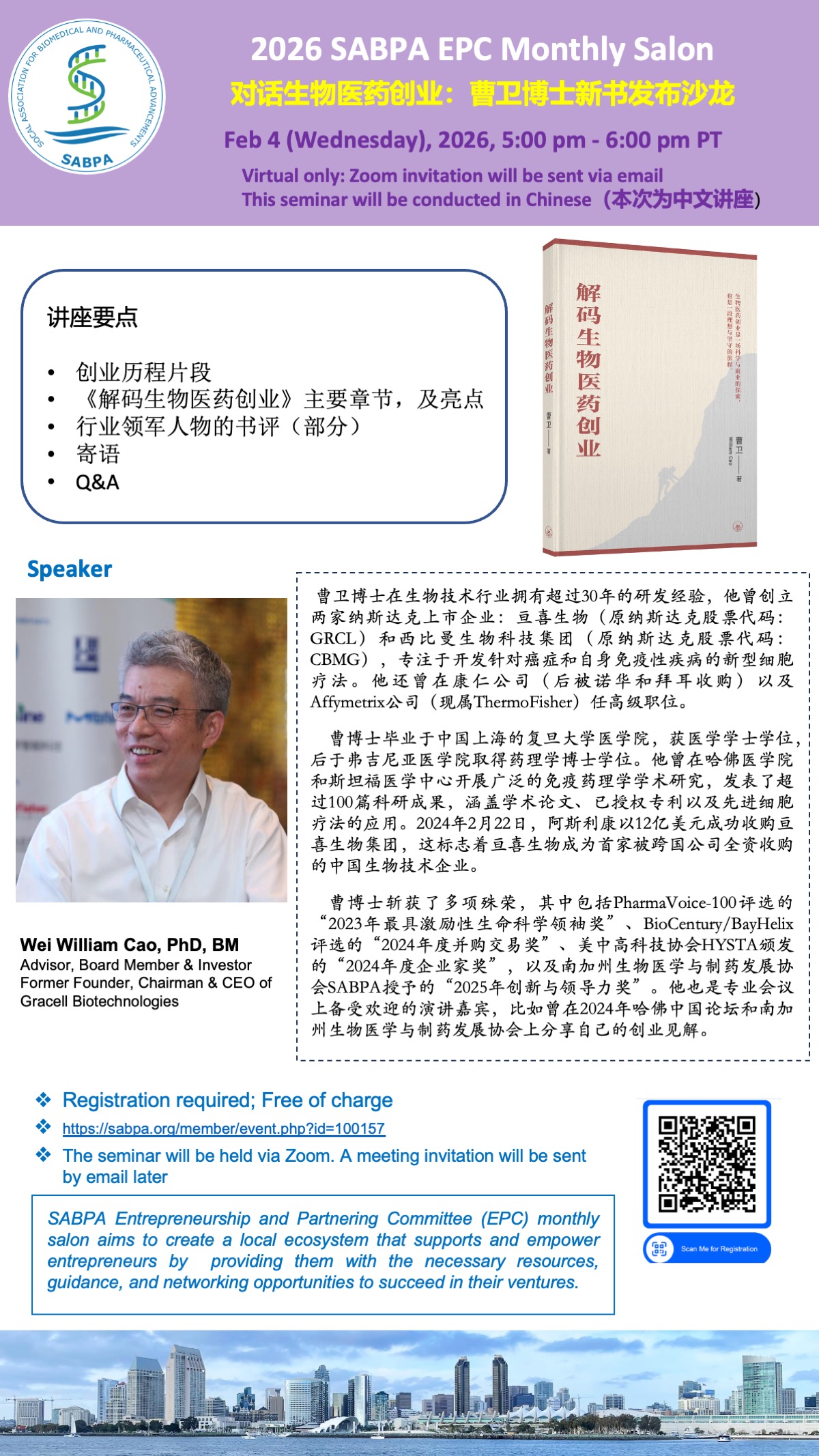 讲座要点: 创业历程片段;《解码生物医药创业》主要章节,及亮点; 行业领军人物的书评(部分); 寄语; Q&A