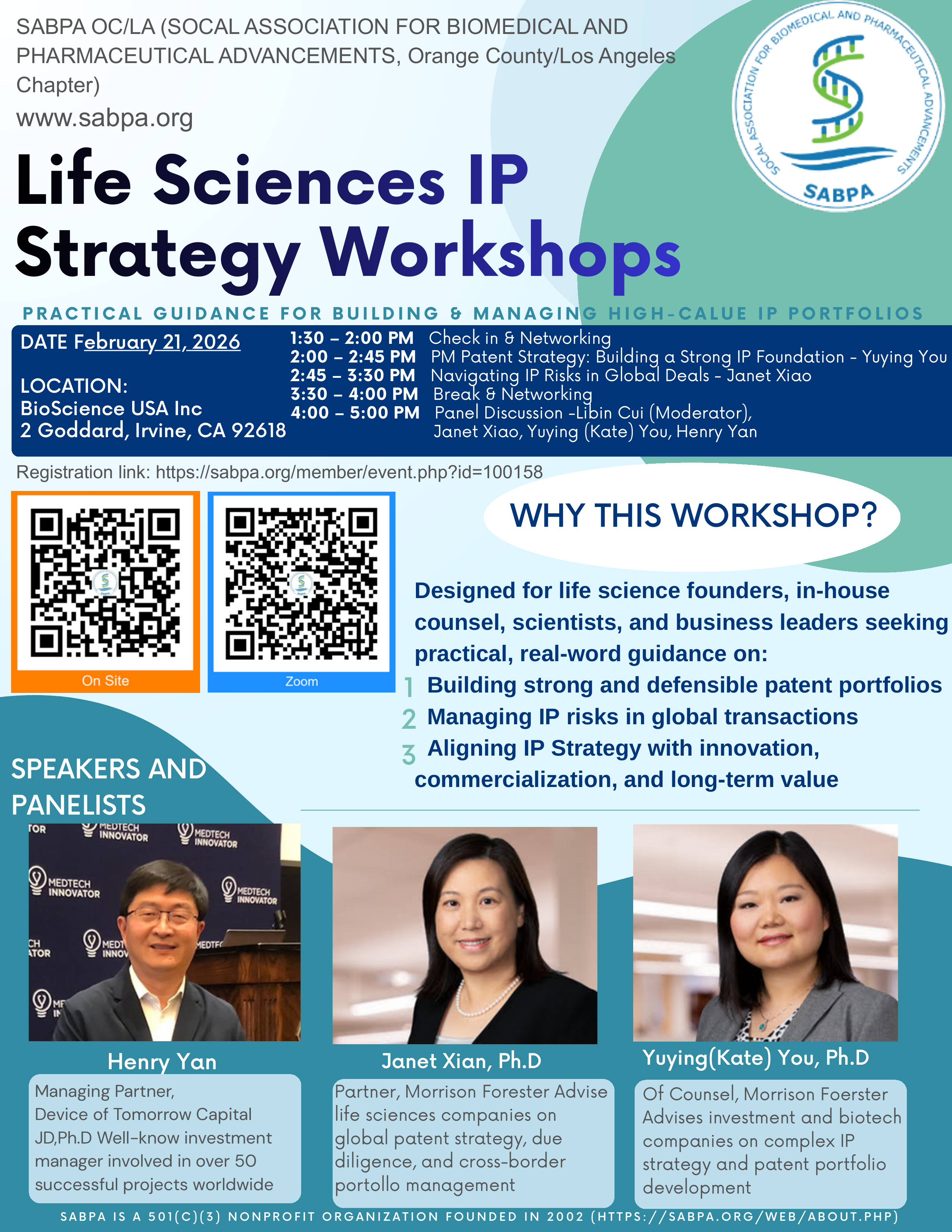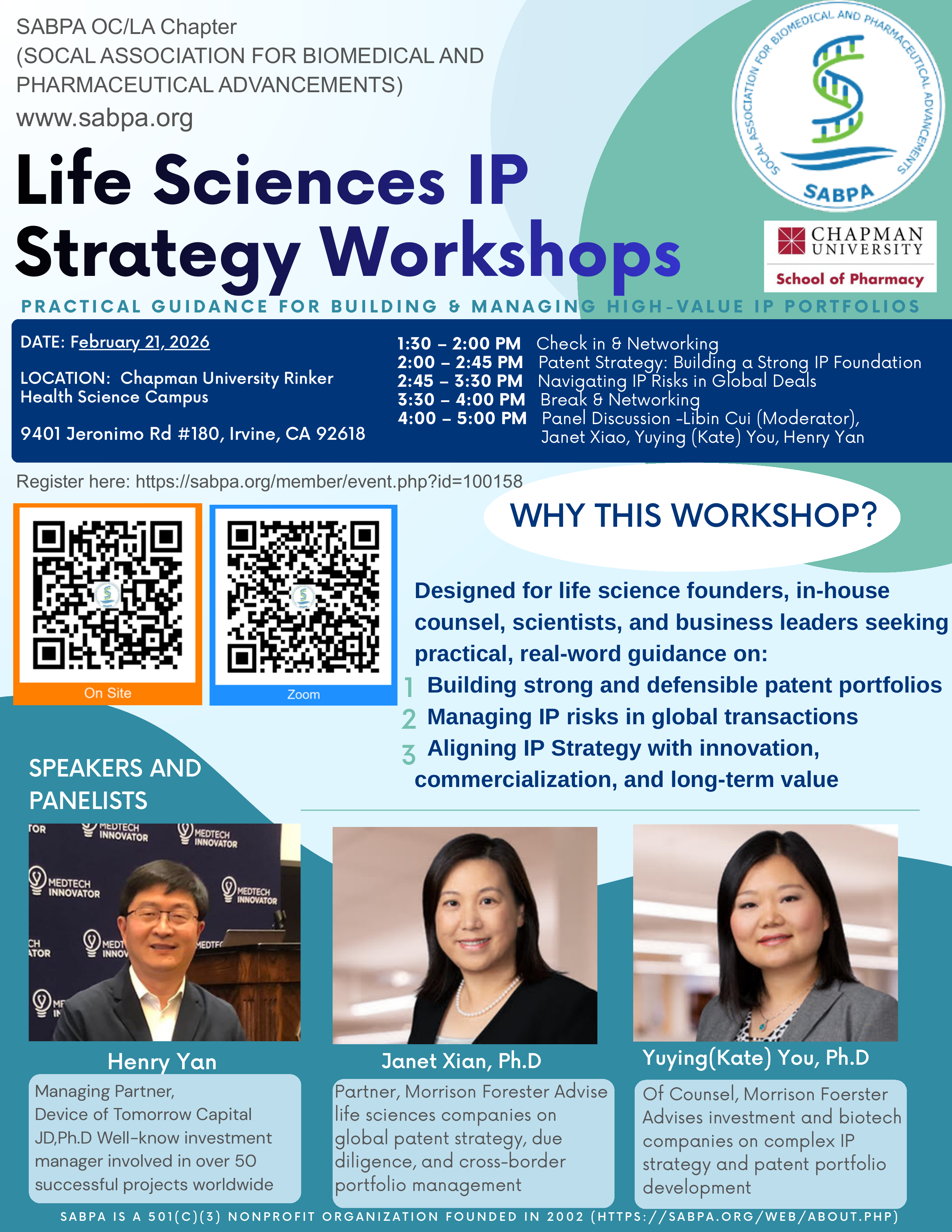 Practical Guidance for Building & Managing High-Value IP Portfolios. Designed for life science founders, in-house counsel, scientists, and business leaders seeking practical, real-world guidance on: 1. Building strong and defensible patent portfolios 2. Managing IP risks in global transactions 3. Aligning IP strategy with innovation, commercialization, and long-term value
